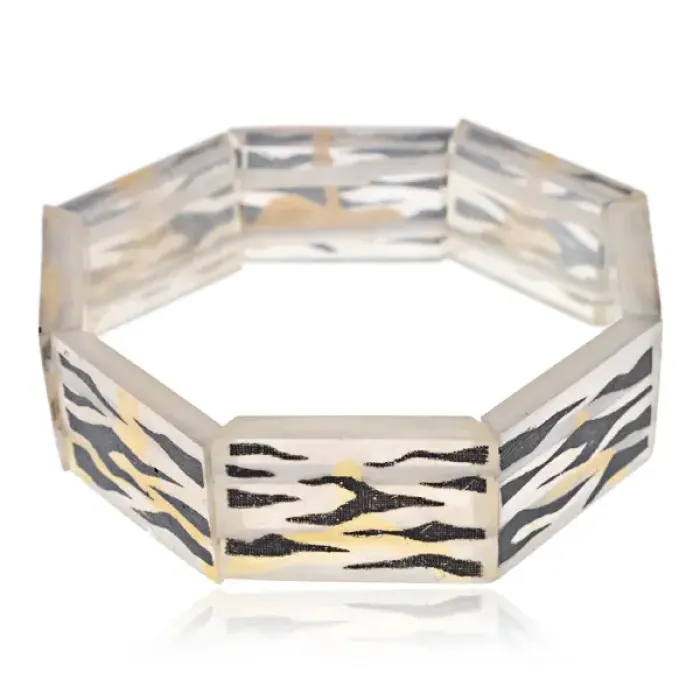 Стрейч-браслет с пластинами из пластика, украшенными зебровым рисунком.