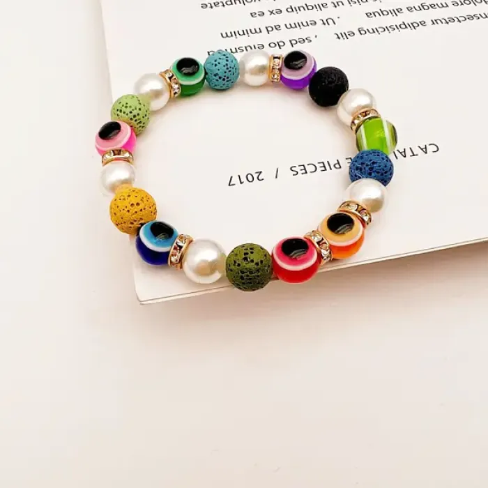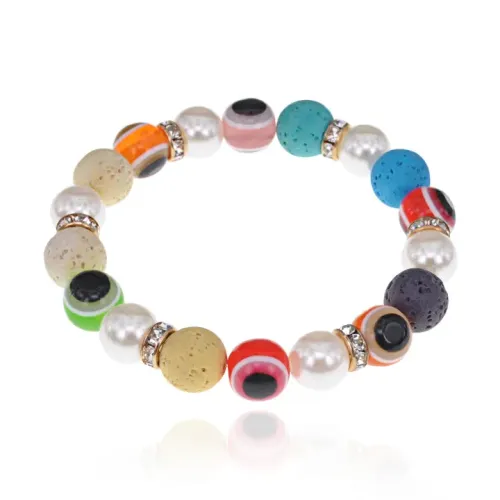 Браслет от сглаза с жемчугом, лавой и стразами, 10мм BS569