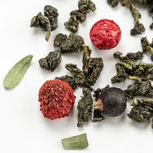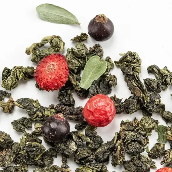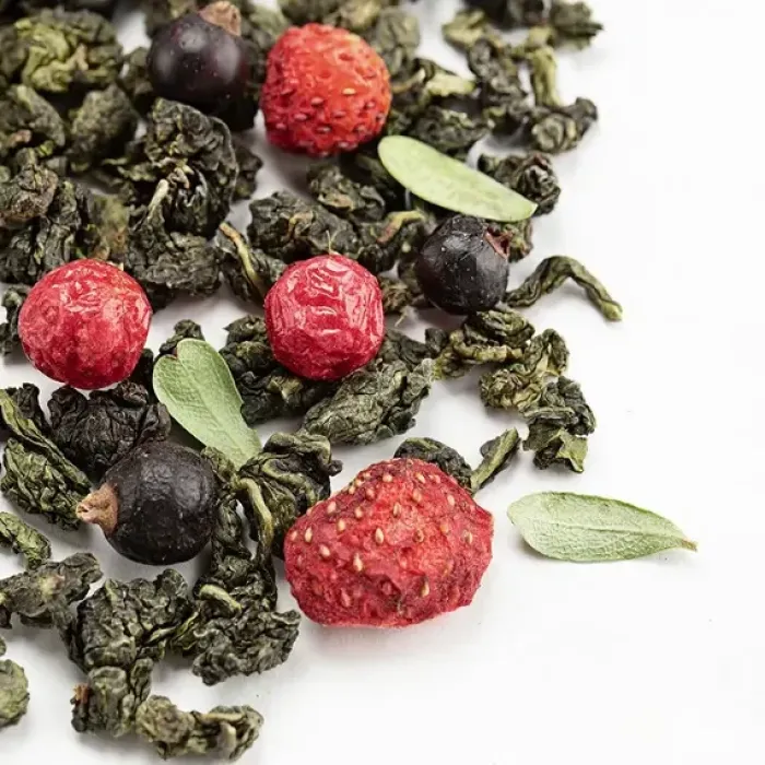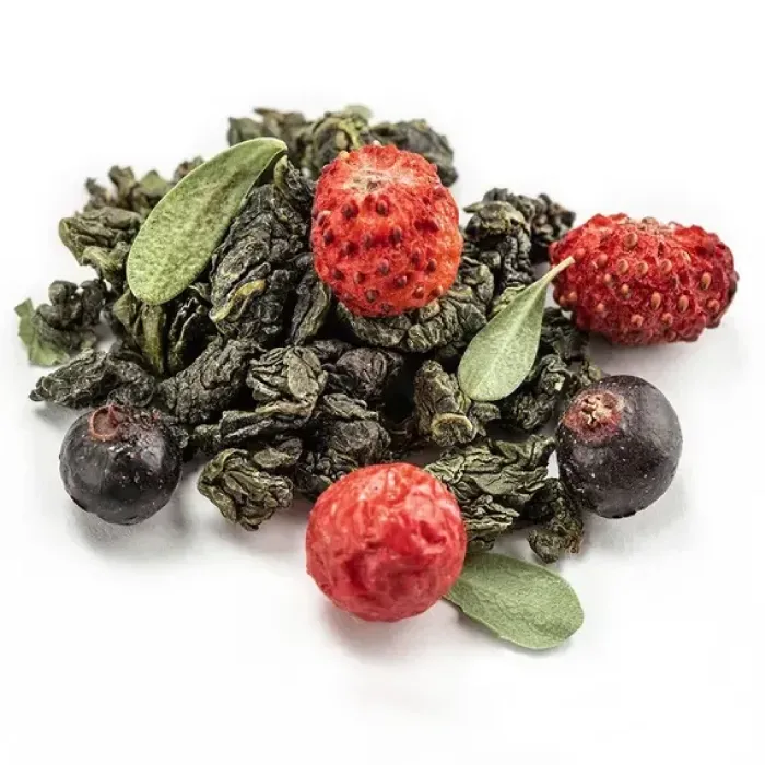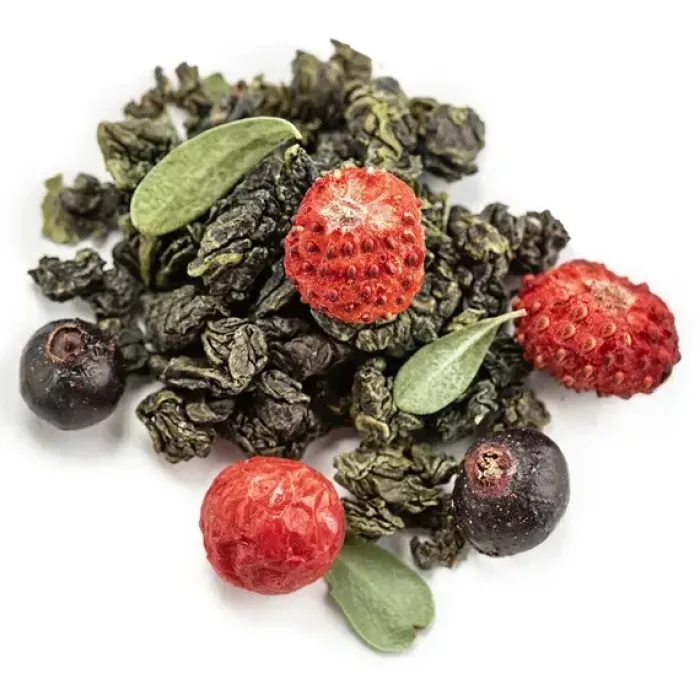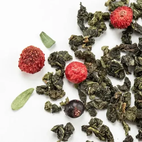 Этот ароматизированный улун создаёт атмосферу летнего сада, где насыщенный ягодный букет гармонично вплетается в мягкую, слегка терпкую основу чая. Напиток обладает особой глубиной вкуса со сладостью и лёгкой освежающей кислинкой.