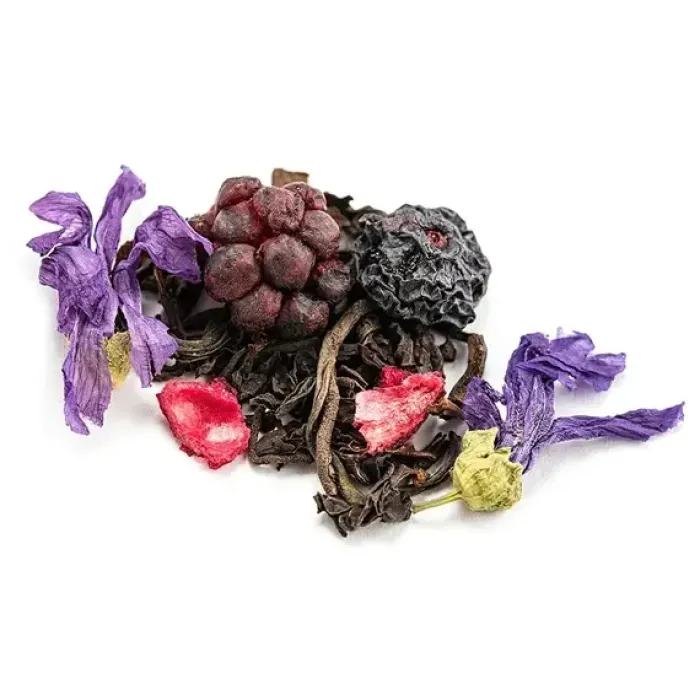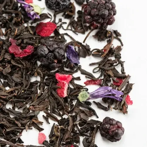 Этот чёрный ароматизированный чай с композицией из лесных ягод создаёт насыщенный тёмный настой. Его вкус и аромат построены на гармонии сладких ягод голубики и ежевики, лёгкой цветочной свежести и освежающей кислинки.