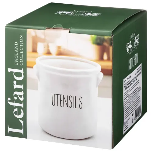 Подставка для столовых приборов Lefard — практичный аксессуар для организации пространства на кухне. Она помогает аккуратно разместить столовые приборы и кухонную утварь, сохраняя порядок и экономя место. Изделие выполнено из высококачественной керамики, что обеспечивает долговечность и эстетичный внешний вид.