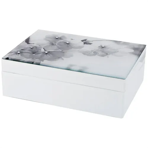 Конструкция шкатулки продумана до мелочей: прочные материалы обеспечивают долговечность, а компактные размеры позволяют разместить её в удобном месте. Стеклянная крышка добавляет элегантности, позволяя видеть содержимое без открытия. Такой аксессуар станет не только полезным предметом быта, но и стильным элементом декора.