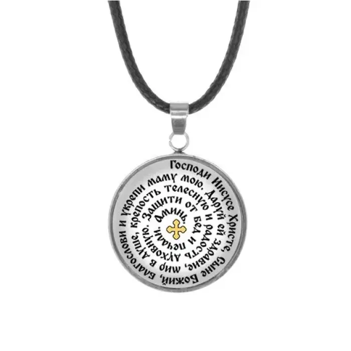 Кулон, нержавеющая сталь, со шнурком, Молитва Иисусу Христу за маму C1210062