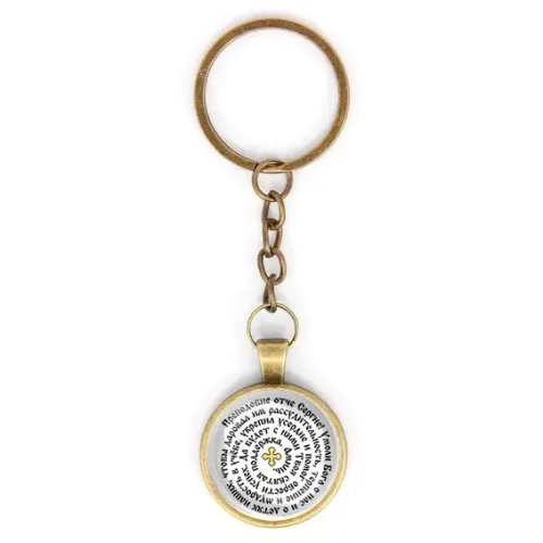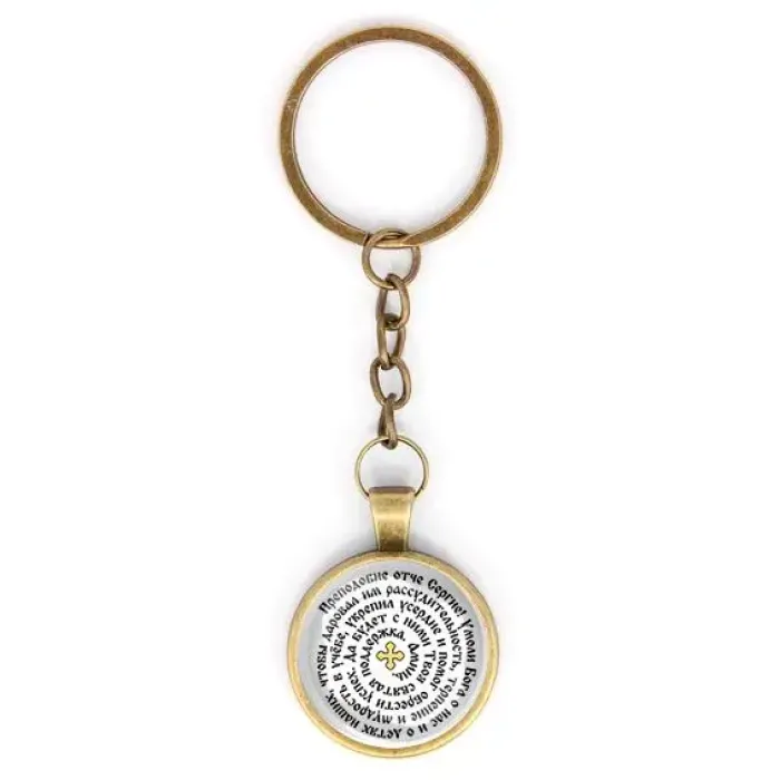 Круглый брелок, цвет бронза, с цепочкой, Молитва Сергею Радонежскому о помощи в учебе C1211018