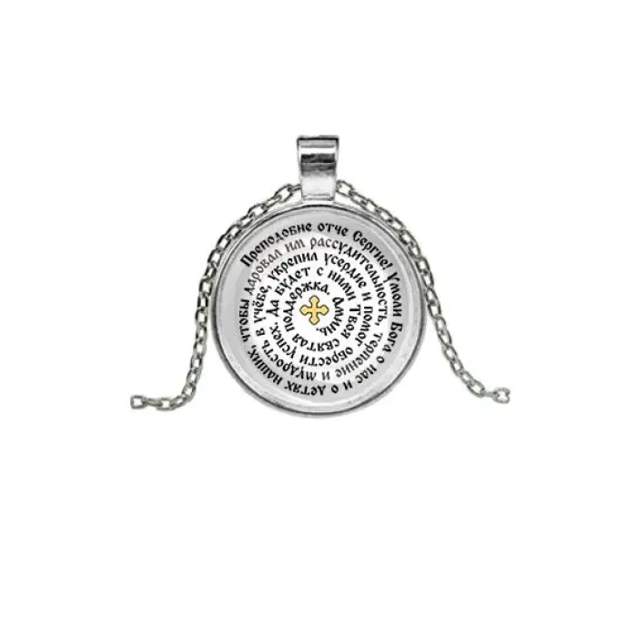 Кулон с изображением молитвы Сергею Радонежскому — это не только стильное украшение, но и символ поддержки в учёбе. Изготовленный из бижутерного сплава с покрытием под серебро и стекла, он станет прекрасным подарком для студентов и школьников. Основные особенности: