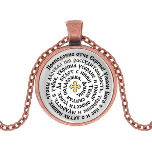 Кулон с молитвой Сергею Радонежскому — это не только стильный аксессуар, но и символ поддержки в учебе. Изготовленный из бижутерного сплава с покрытием под медь и стекла, он станет прекрасным подарком для студентов и школьников. Основные характеристики включают: диаметр кулона 28 мм и длину цепочки 60 см с надежной застёжкой типа лобстер. Изображение защищено выпуклой стеклянной линзой, что придаёт изделию дополнительную прочность и элегантность. Этот кулон традиционно ценится за свою духовную значимость и помогает сосредоточиться на знаниях.