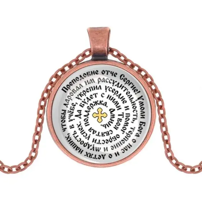 Кулон, цвет медь, с цепочкой, Молитва Сергею Радонежскому о помощи в учебе C1211030