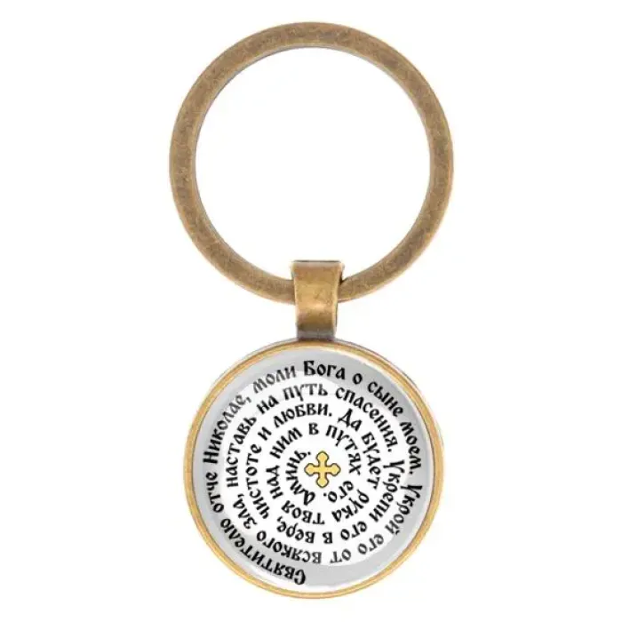 Круглый брелок, цвет бронза, Молитва Николаю Чудотворцу за сына C1212017