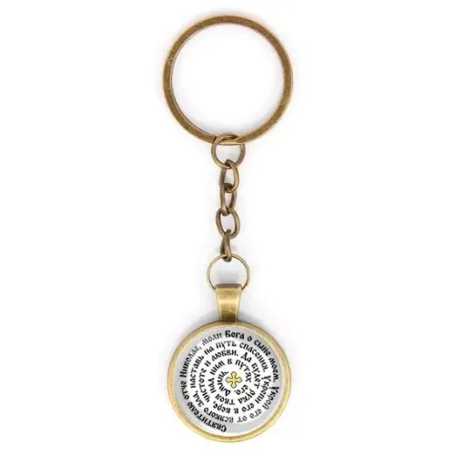 Этот круглый брелок в бронзовом цвете — не просто аксессуар, а символ веры и надежды. Он украшен молитвой Николаю Чудотворцу за сына, что делает его идеальным подарком для близких или личным оберегом. Изготовлен из бижутерного сплава с покрытием под бронзу и стекла, он сочетает в себе прочность и элегантность.