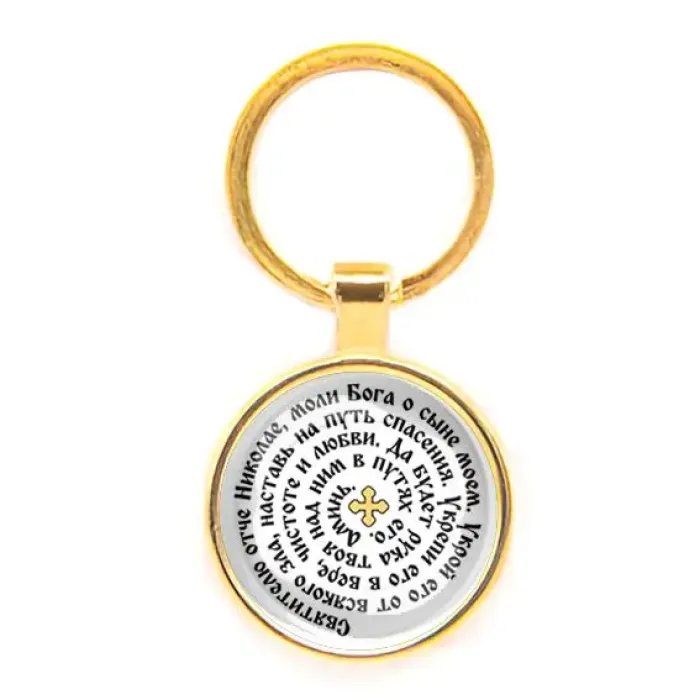 Круглый брелок, цвет золото, Молитва Николаю Чудотворцу за сына C1212019