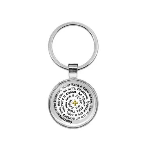 Круглый брелок, цвет серебро, Молитва Николаю Чудотворцу за сына C1212021