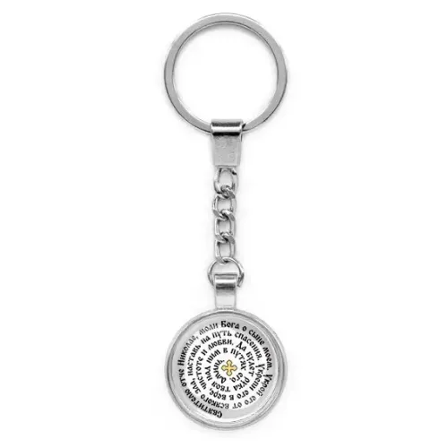 Круглый брелок, цвет серебро, с цепочкой, Молитва Николаю Чудотворцу за сына C1212022
