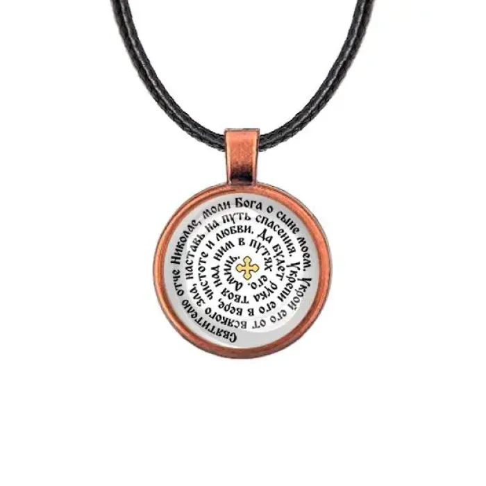 Кулон с молитвой Николаю Чудотворцу — это не только стильный аксессуар, но и символ надежды и защиты. Он традиционно используется как оберег для сыновей, приносящий поддержку и благословение. Изготовлен из бижутерного сплава с покрытием под медь и стекла, что придает ему особую привлекательность.