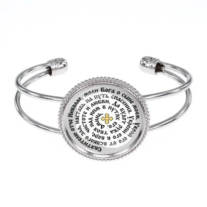 Браслет с молитвой Николаю Чудотворцу — это не просто украшение, а символ надежды и защиты. Изготовленный из бижутерного сплава с покрытием под серебро, он станет прекрасным подарком для близкого человека или личным амулетом. Основные особенности: