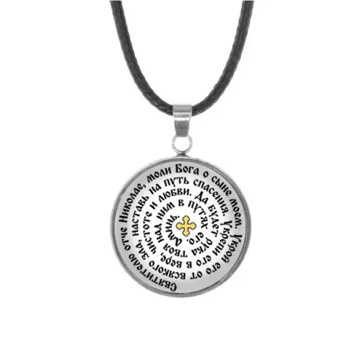 Кулон, нержавеющая сталь, со шнурком, Молитва Николаю Чудотворцу за сына C1212062