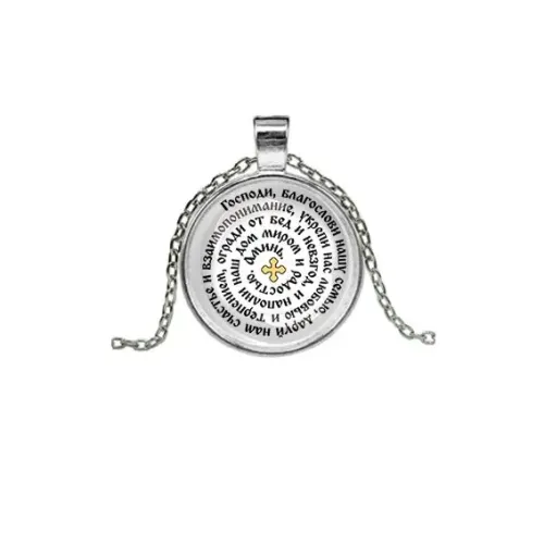 Кулон "Молитва Господу Богу за семью" — это стильный аксессуар, который сочетает в себе красоту и глубокий смысл. Он традиционно символизирует защиту и благополучие семьи. Изготовленный из бижутерного сплава с покрытием под серебро и стекла, кулон отличается высоким качеством и элегантным дизайном.