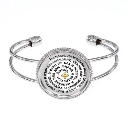 Металлический браслет с молитвой Господу Богу за семью — это не просто украшение, а символ духовной связи и защиты. Изготовленный из бижутерного сплава с покрытием под серебро, он станет прекрасным подарком для близких или личным оберегом. Основные особенности: