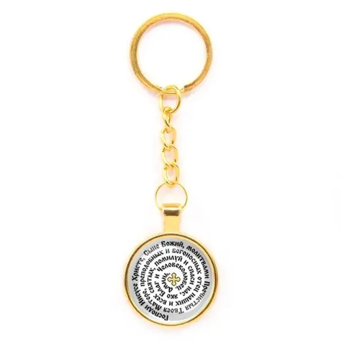 Круглый брелок, цвет золото, с цепочкой, Молитва Иисусу Христу о спасении C1214020