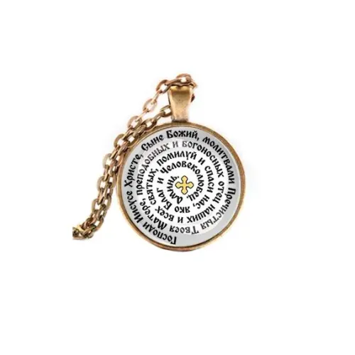 Кулон с молитвой Иисусу Христу — это не просто украшение, а символ веры и надежды. Он выполнен из бижутерного сплава с покрытием под бронзу и дополнен стеклянной линзой, защищающей изображение. Основные особенности: