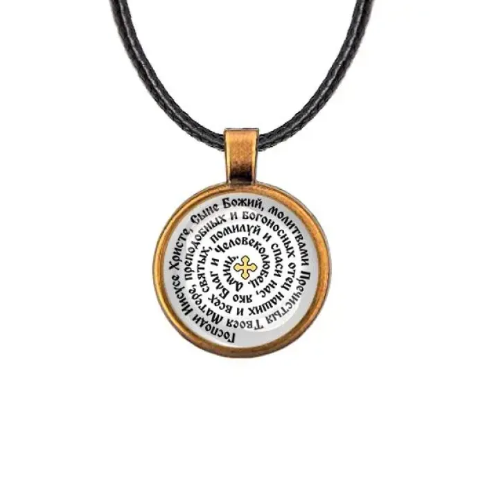 Кулон с изображением молитвы Иисусу Христу о спасении — это не просто украшение, а символ веры и надежды. Изготовленный из бижутерного сплава с покрытием под бронзу и стеклом, он станет прекрасным дополнением к любому образу.