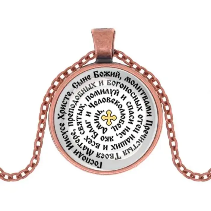 Кулон с изображением молитвы Иисусу Христу о спасении — это не только стильное украшение, но и символ духовной поддержки. Изготовленный из бижутерного сплава с покрытием под медь и стекла, он станет прекрасным дополнением к любому образу. Диаметр кулона составляет 28 мм, а длина цепочки — 60 см. Застёжка типа лобстер обеспечивает надежность ношения. Изображение защищено выпуклой стеклянной линзой, что придаёт изделию особую выразительность.