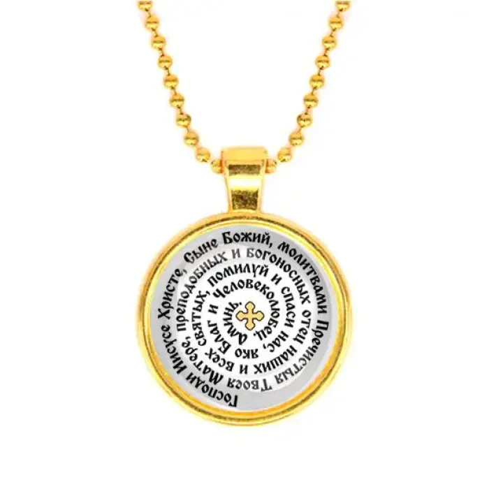 Кулон с молитвой Иисусу Христу — это не только стильный аксессуар, но и символ веры и надежды. Изготовленный из бижутерного сплава с покрытием под золото, он станет прекрасным дополнением к любому образу. Основные особенности: