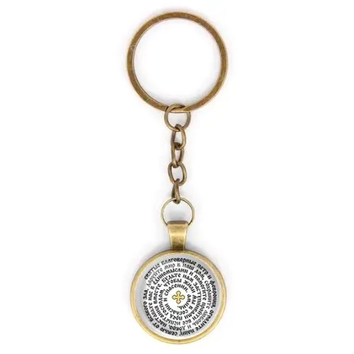 Круглый брелок в цвете бронзы — это стильный аксессуар с глубоким символическим значением. Он украшен молитвой Петру и Февронии, которые считаются покровителями семьи и любви. Этот брелок не только служит практичным элементом для ключей или сумки, но также является оберегом для защиты домашнего очага.