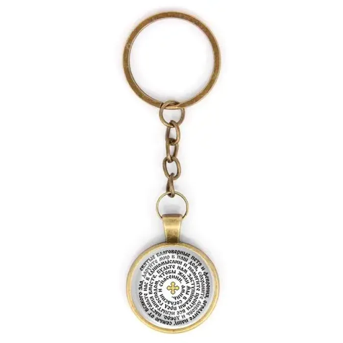 Круглый брелок, цвет бронза, с цепочкой, Молитва Петру и Февронии о защите семьи C1215018