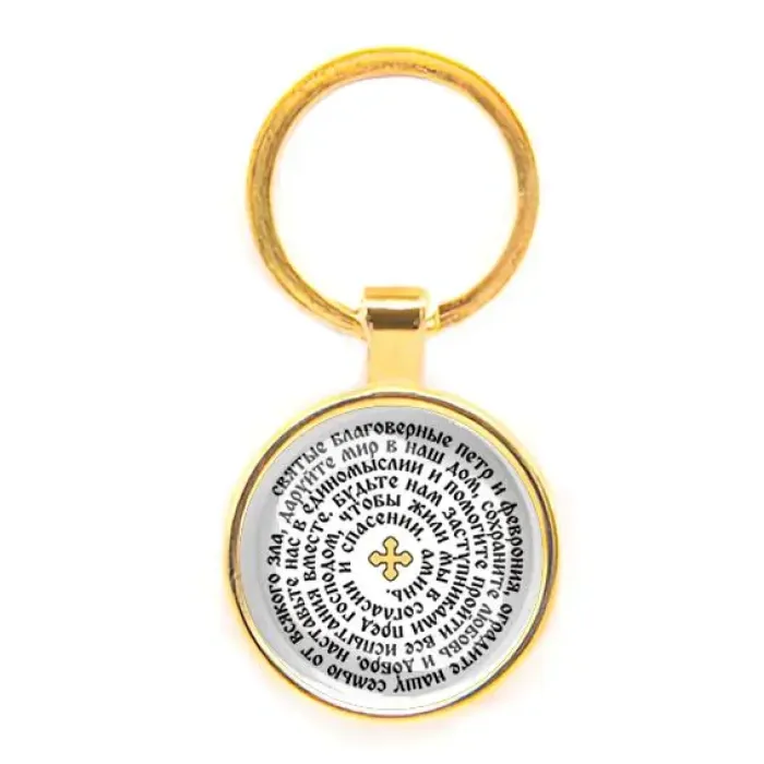 Круглый брелок, цвет золото, Молитва Петру и Февронии о защите семьи C1215019