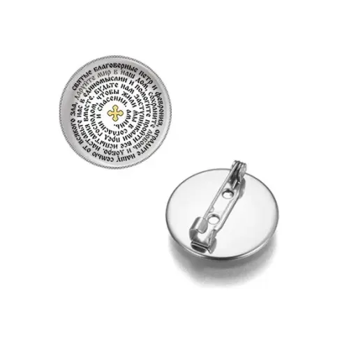 Круглый значок, цвет серебро, Молитва Петру и Февронии о защите семьи C1215023