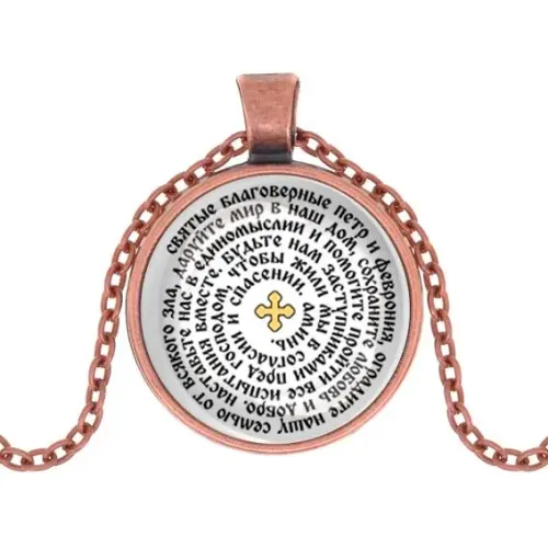 Кулон, цвет медь, с цепочкой, Молитва Петру и Февронии о защите семьи C1215030