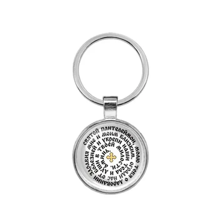 Круглый брелок, цвет серебро, Молитва Пантелеймону Целителю о здравии C1216021