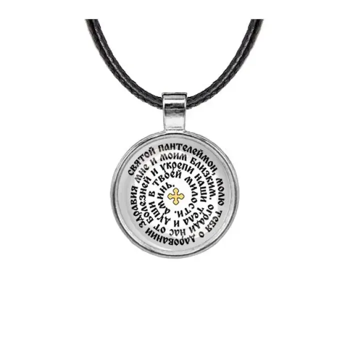 Кулон, цвет серебро, со шнурком, Молитва Пантелеймону Целителю о здравии C1216027