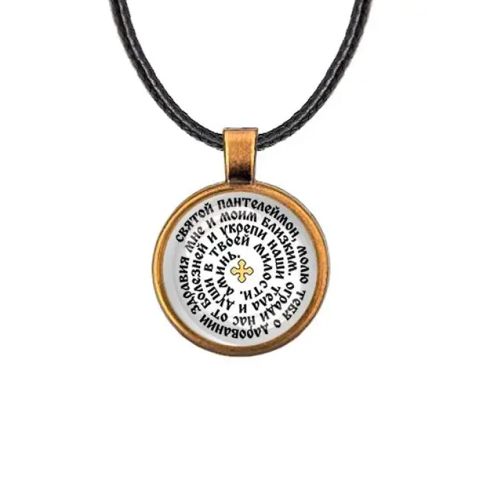 Кулон с молитвой Пантелеймону Целителю — это не только стильный аксессуар, но и символ надежды на здоровье. Изготовленный из бижутерного сплава с покрытием под бронзу и стекла, он станет прекрасным подарком для близких или украшением для себя. Основные характеристики:
