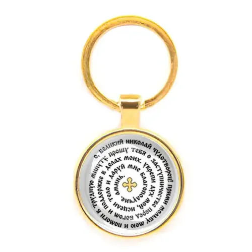 Круглый брелок, цвет золото, Молитва Николаю Чудотворцу о помощи C1217019