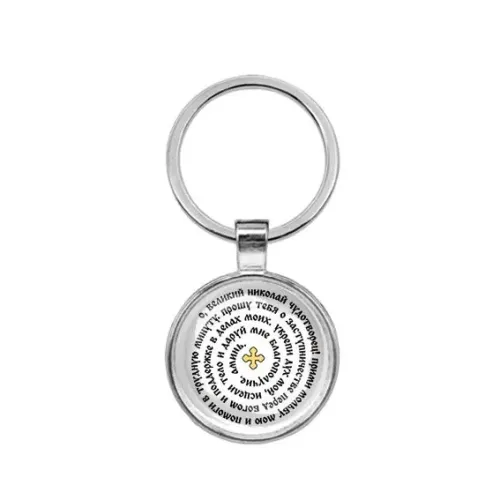 Круглый брелок, цвет серебро, Молитва Николаю Чудотворцу о помощи C1217021