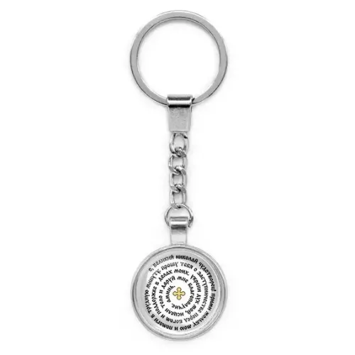 Круглый брелок, цвет серебро, с цепочкой, Молитва Николаю Чудотворцу о помощи C1217022