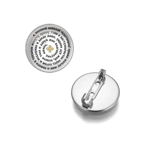 Круглый значок, цвет серебро, Молитва Николаю Чудотворцу о помощи C1217023