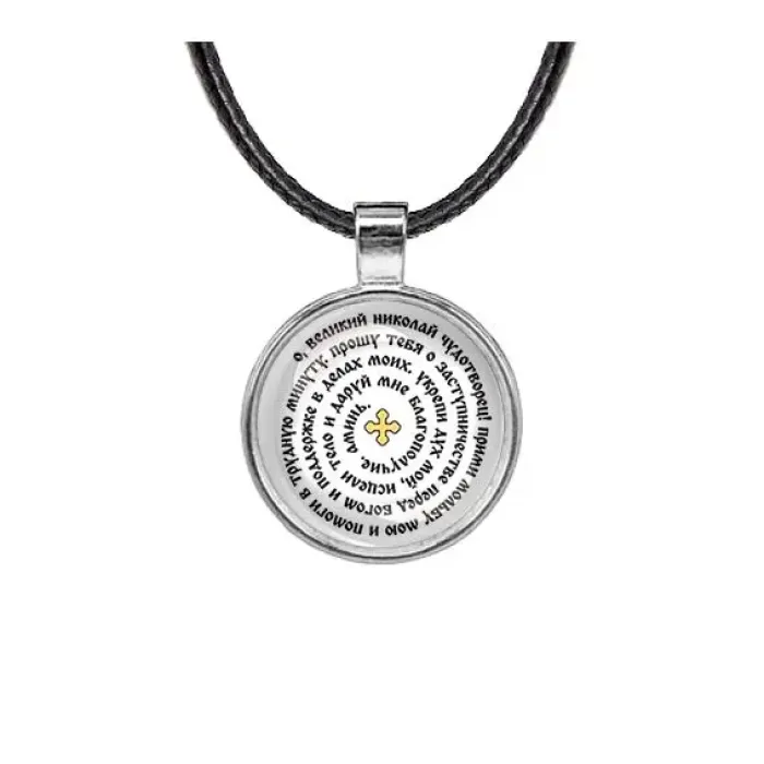 Кулон с молитвой Николаю Чудотворцу — это не только стильное украшение, но и символ надежды и поддержки. Он традиционно используется как оберег для привлечения удачи и помощи в трудных ситуациях. Изготовленный из бижутерного сплава с покрытием под серебро и стекла, кулон обладает утончённым дизайном. Диаметр кулона составляет 28 мм, а длина шнурка — 45 см. Застёжка выполнена в виде замка типа лобстер для удобства ношения. Изображение защищено выпуклой стеклянной линзой, что придаёт изделию дополнительную защиту и эстетическую привлекательность.