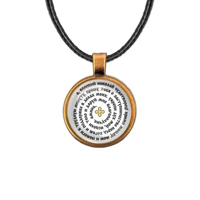 Кулон с молитвой Николаю Чудотворцу — это не только стильный аксессуар, но и символ надежды и поддержки. Изготовленный из бижутерного сплава с покрытием под бронзу и стеклом, он станет прекрасным подарком для близких или личной защитой. Основные особенности: