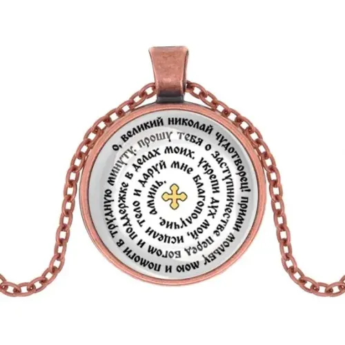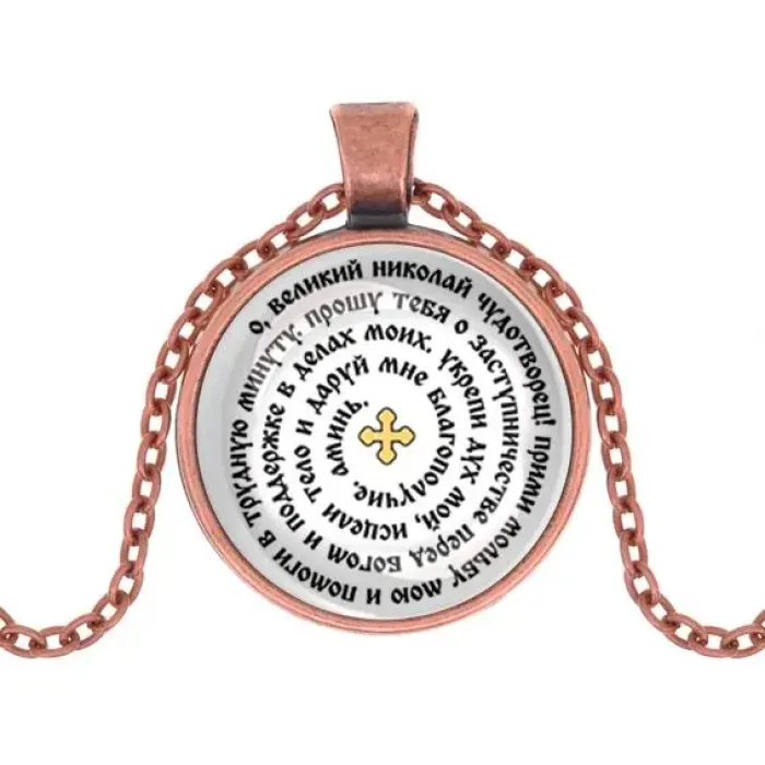 Кулон с молитвой Николаю Чудотворцу — это не только стильное украшение, но и символ надежды и поддержки. Изготовленный из бижутерного сплава с покрытием под медь и стекла, этот кулон станет прекрасным подарком для тех, кто ценит духовные традиции.