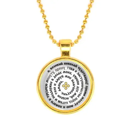 Кулон с молитвой Николаю Чудотворцу — это не только стильный аксессуар, но и символ веры и надежды. Он традиционно используется как оберег для привлечения помощи в трудные времена. Изготовленный из бижутерного сплава с покрытием под золото и стекла, кулон станет прекрасным дополнением к любому образу.