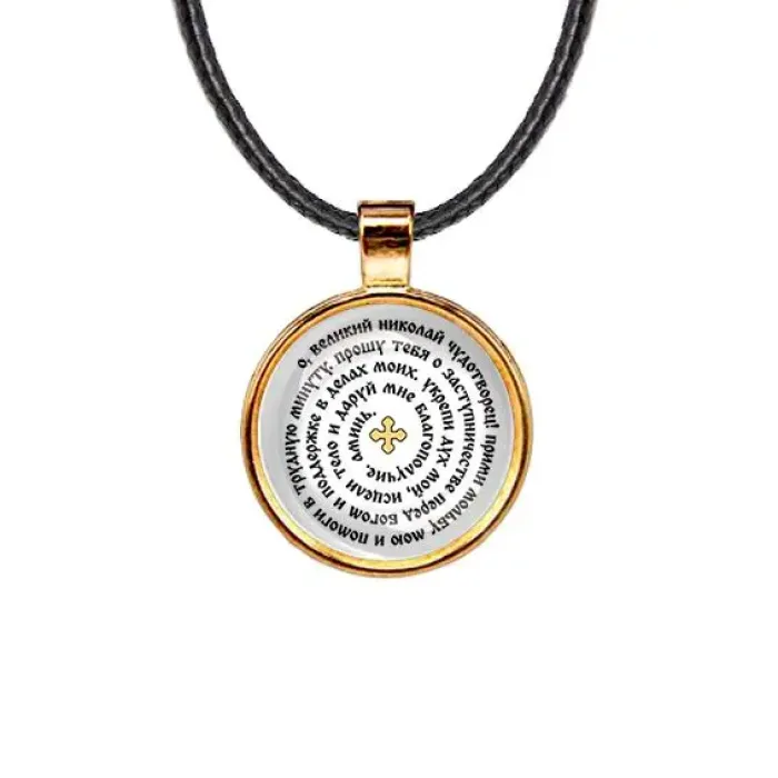 Кулон с молитвой Николаю Чудотворцу — это не только стильный аксессуар, но и символ надежды и поддержки. Изготовленный из бижутерного сплава с покрытием под золото и стекла, он станет прекрасным подарком для близких или личным оберегом. Диаметр кулона составляет 28 мм, а длина шнурка — 45 см. Застёжка типа лобстер обеспечивает надежность ношения, а изображение защищено выпуклой стеклянной линзой. Этот кулон традиционно ценится за свою духовную значимость и может стать важной частью повседневного образа.