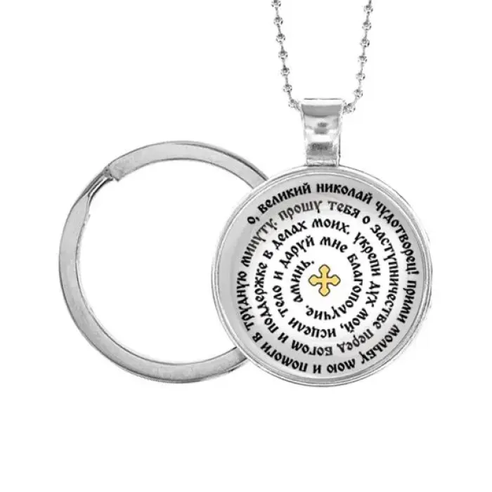 Кулон-брелок с изображением молитвы Николаю Чудотворцу — это не только стильный аксессуар, но и символ надежды на помощь в трудные времена. Изготовленный из бижутерного сплава с покрытием под серебро и стекла, он станет отличным подарком или личным оберегом.