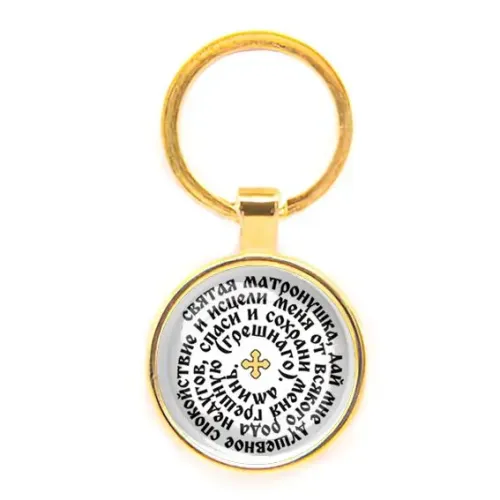Круглый брелок, цвет золото, Молитва Матроне Московской о помощи C1218019