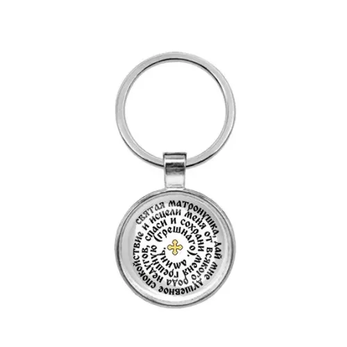 Круглый брелок, цвет серебро, Молитва Матроне Московской о помощи C1218021
