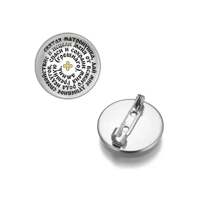 Круглый значок, цвет серебро, Молитва Матроне Московской о помощи C1218023