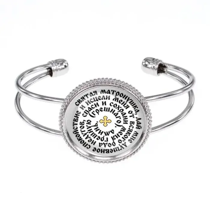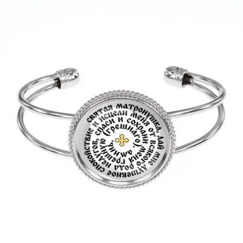 Браслет с молитвой Матроне Московской о помощи — это не только стильный аксессуар, но и символ веры. Изготовленный из бижутерного сплава с покрытием под серебро, он станет прекрасным дополнением к любому образу. Основные особенности: