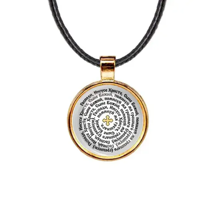 Кулон с изображением Иисусовой молитвы — это не только стильный аксессуар, но и символ веры. Изготовленный из бижутерного сплава с покрытием под золото и стекла, он станет прекрасным дополнением к любому образу. Основные особенности: