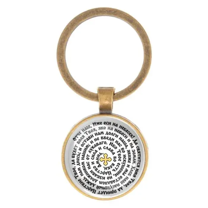 Круглый брелок, цвет бронза, Молитва Отче наш C1220017